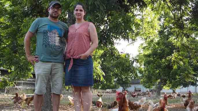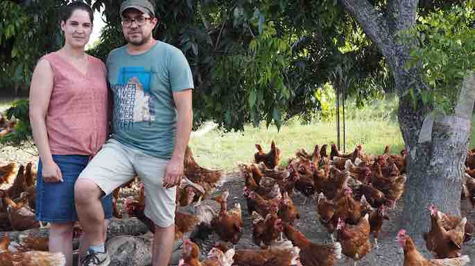 El quehacer diario de una granja es algo que no le ha venido de nuevas a la pareja, pues ambos llevan toda la vida ligados al campo y a la ganadería y la agricultura. La finca donde nos encontramos la puso en marcha el padre de Inma, Pepe Urbano, y tanto él como su madre, Antonia Hevilla, plantaron la semilla de lo que hoy es una granja de agricultura-ganadería ecológica que cuenta con una clientela fiel. “Durante la cuarentena nos escribían para preguntarnos dónde podían encontrar nuestros huevos para seguir consumiéndolos”, cuenta Antonio. Nos van mostrando el paso a paso de esta profesión, desde que llegan hasta que terminan la jornada. Hay que limpiar y mantener las instalaciones en buenas condiciones, poner de comer a las gallinas, recoger los huevos, envasar y repartir cuando toca. Los martes los llevan a Málaga, los jueves a Marbella y los viernes están en Fuengirola.