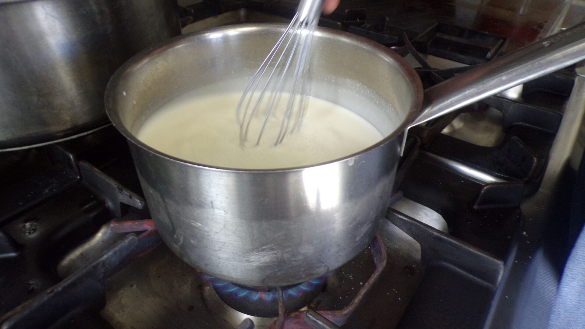 El comienzo es como el de cualquier otro flan: se añade el azúcar con la leche, pero Milos introduce el ingrediente estrella: la nata. Para que la mezcla se integre se lleva a fuego medio durante un par de minutos, hasta que alcance 80 grados de ebullición.