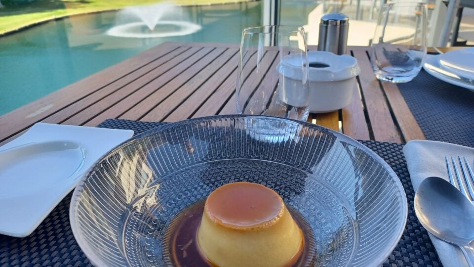 Por la noche se convierte en El Lago y recupera su esencia de alta cocina con una propuesta más elaborada, en definitiva de Estrella Michelin. Pero, hoy dejamos a un lado estas elaboraciones y fijamos la mirada en un postre: el flan casero by El Midi.