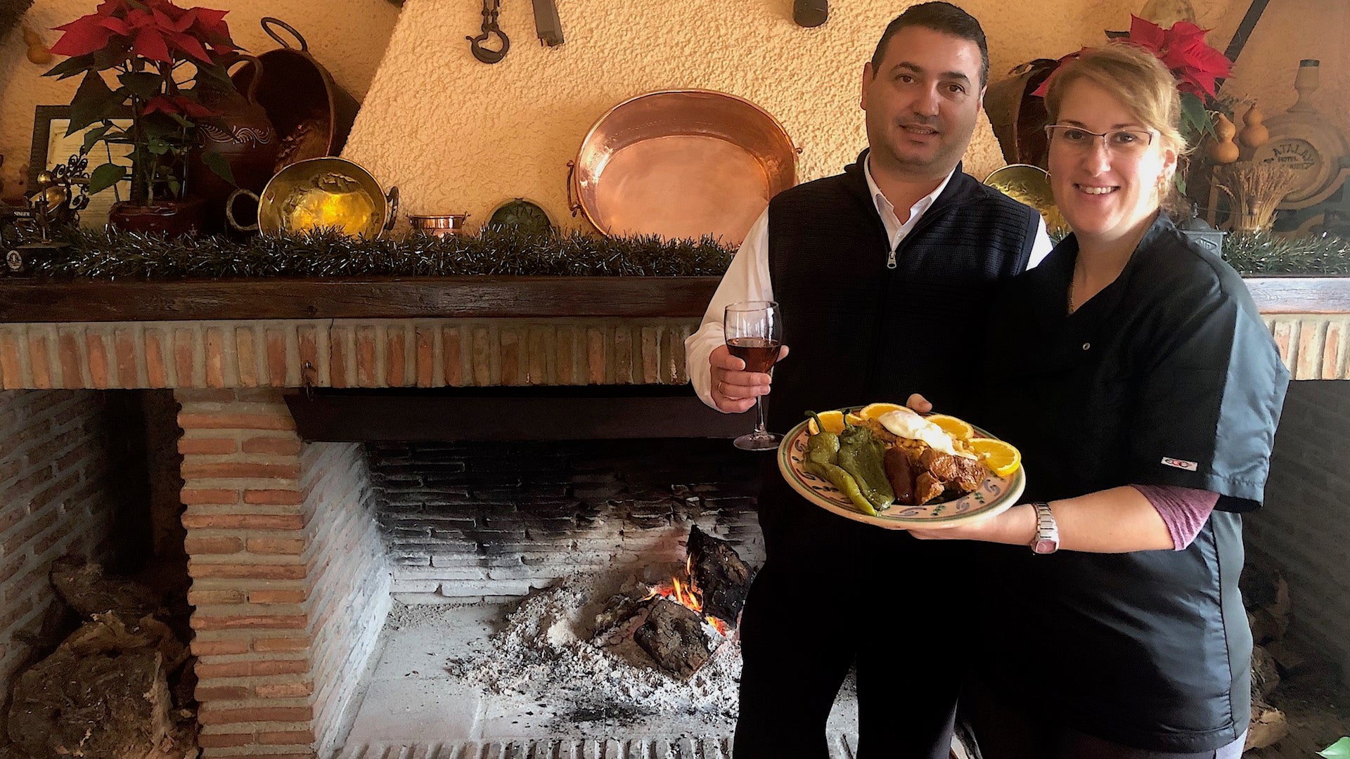 Nos recibe Eva María Robles, al frente del negocio junto a su marido Antonio. Le preguntamos: ‘Eva, ¿cómo se consiguen estas migas?’. Ella lleva trabajando en el restaurante desde los 17 años. Ante la atenta mirada de sus hijos nos explica que lo fundamental es tener mucha paciencia a la hora de moverlas. “Se trata de conseguir que estén sueltas y que no se peguen, poco a poco hasta que alcancen ese tono dorado tan característico. En 15 o 20 minutos están listas para servir”, comenta mientras degustamos esta especialidad de la casa.
