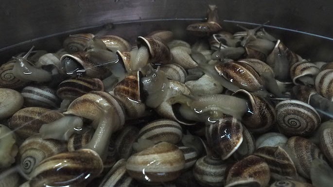 Lo fundamental es el producto, la calidad del mismo . Carmona hace hincapié en ello y nos comenta que trabaja desde hace años con un proveedor que tiene una criadero de caracoles en la sierra . Lo cierto es que, al llegar a Arte de Cozina , comprobamos la ‘buena cara’ que tienen. Solo hay que echarles un vistazo. “Cuando me los traen están ya ‘ayunaos’, listos para empezar a ponernos con ellos”, señala mientras los pone en una gran cacerola con agua. Les da tiempo para que vayan saliendo y, si nos descuidamos, alguno se escaparía. “Dicen que los caracoles son lentos… ¡Y realmente vuelan!”, comenta entre risas con Erika, que está con ella a los fogones del establecimiento.
