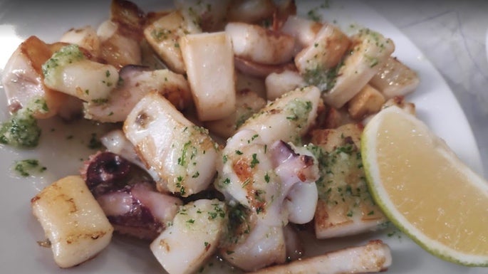 Hermanos Céspedes y la Pescadería Jonathan son los dos puestos del mercado de Bailén en los que confía Alberto para adquirir buen producto que servir a su clientela en Marisquería Pelayo . Alberto Pérez Molina ha tomado el testigo de su tío, que fue el que abrió inicialmente este establecimiento en la calle Pelayo. Desde hace tres meses funciona en el número 11 de la calle Cataluña, un restaurante en el que apuesta por seguir la misma línea de siempre: materia prima ‘contada’ para que lo que se sirve a la mesa sea siempre del día, pescado y marisco fresco. Gambas cocidas, conchas finas, la raya , “que la estamos friendo y gusta bastante”… Junto a estas y otras especies, guisos de cuchara y arroz caldoso .