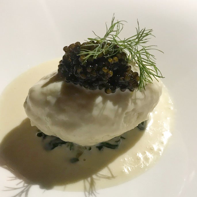 Quenelle de rodaballo con caviar y una beurre blanc de Chablis