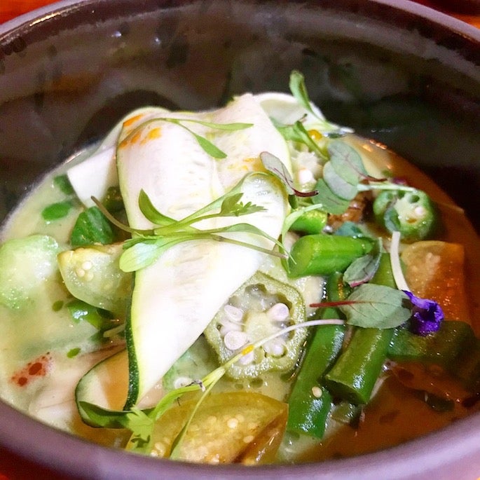 Curry verde ligero de verano con verduras ecológicas de temporada