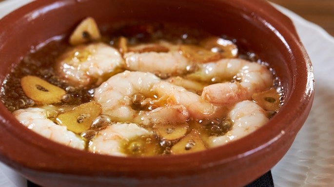 Y de costa a costa, de Marbella a Mezquitilla , para poner en este mapa de ‘clásicos’ que siempre gusta pedir las gambas al pil pil de Francisco García, en El Yantar . En su cocina se respeta al máximo el producto y se ‘toca’ lo menos posible. En el caso de estas gambas se vuelve a manifestar esa seña de identidad, como él mismo comparte con GURMÉ Málaga: “Lo preparamos con gambas frescas, nada de langostinos o de producto congelado. Se ponen a la plancha o cocidas y se mantiene la cabeza, que al final es el sitio donde conserva lo mejor de su jugo. Aceite, poca cocción para que queden cruditas y algo de guindilla y perejil, por darle color. Nada más. No gustamos de abusar del ajo o del pimentón”. Está la opción de pedir el carpaccio de gambas al pil pil , para el que se les da a las gambas un toque de grill, para conseguir que esté simplemente templado.