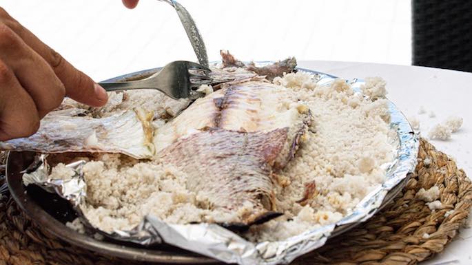 Pueden presumir de una vitrina de pescados que poco tienen que envidiar los más célebres restaurantes especializados en producto del mar. “Materia prima superlativa” y “Manolo Alba cuidando la ortodoxia de las preparaciones y los puntos de cocción en la cocina”. Carlos Mateos destaca el restaurante Hermanos Alba por varias de sus elaboraciones, entre estas el pescado a la sal. En su opinión, “ un restaurante sobresaliente”, “en el podium de direcciones de Málaga capital para disfrutar del producto marino ”. En Hermanos Alba consideran que esta es “ una de las mejores formas de cocinar el pescado, a la sal, pues mantiene todas sus propiedades y deja un producto jugoso y con gran sabor ”. En el restaurante se sirve y se limpia el pescado en mesa para que el comensal “se sienta como en casa y lo disfrute al máximo. Esta es de nuestras labores preferidas”.