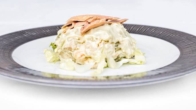 La tercera que citábamos es la de Grupo Refectorium , un clásico de la carta de estos restaurantes en la que se prepara con patata, mayonesa, judías verdes, atún y un poco de zanahoria. La familia Ramírez nos comentó hace un tiempo que para ellos es fundamental el acierte de oliva, que se suele usar de temporadas anteriores “para evitar ese amargor propio del virgen extra reciente”.