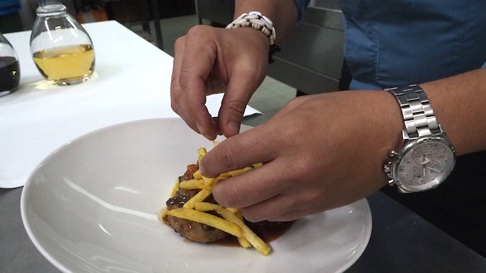 Andrés Albarracín y Pasquale Bianchino están al frente de la cocina y con ellos nos disponemos a conocer más detalles sobre esta elaboración. Como apuntamos anteriormente, el rabo de toro a la rondeña es una de las propuestas más reconocidas del Restaurante Pedro Romero en Ronda. “Rara es la mesa donde no se pide, ¿eh?”, comenta Tomás Mayo con GURMÉ.