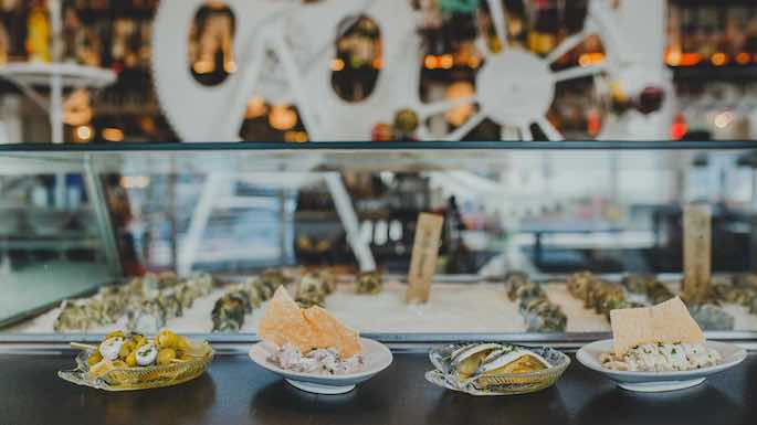 Para pedir: Selección de montaditos, ensaladilla de pulpo, ventresca ahumada o cangrejo, chacinas ibéricas de Maldonado, embutidos de Can Company, caviar de Polanco u ostras de La Belle Huitre.