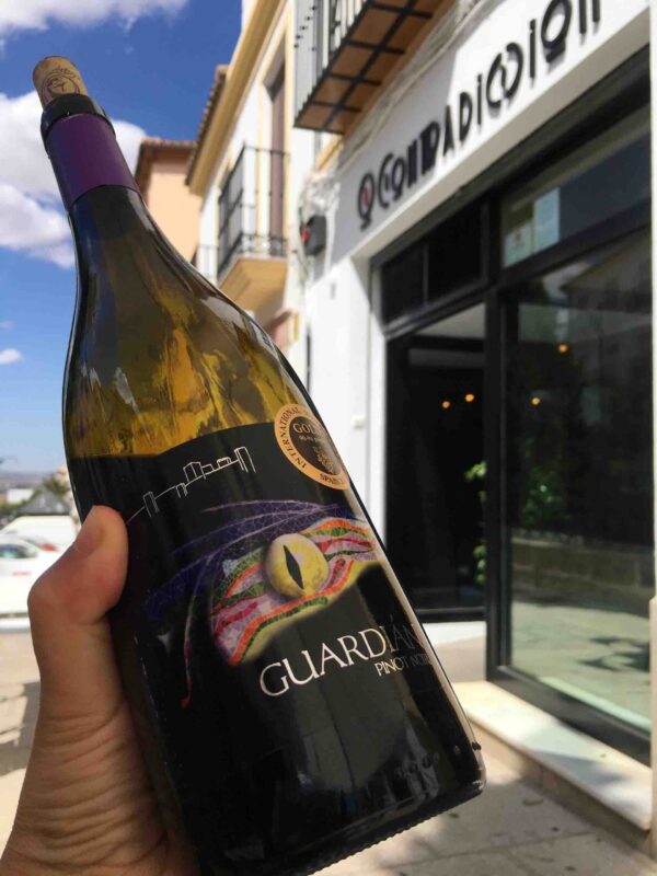 La carta de vinos , en la que destacan referencias andaluzas, acompaña bien a una cocina creativa, divertida y viajera, pero con sentido, con raíces y “con tradición” y “contradicción”. En ella se deja ver la mano de José María Claros y Carmen Aparicio, dos distribuidores que no fallan. Vinos de la Axarquía malagueña, Ronda y Granada con un ojo en Montilla y Jerez . Una carta corta, bien pensada, que seguro irá creciendo.