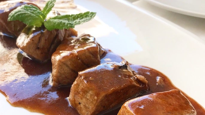 El local, dividido en dos salones, zona de barra y terraza, ya sorprende de entrada por su amplitud y por esa apuesta firme por el confort de los clientes. Como sorprende la pizarra del bar donde se listan los vinos generosos en oferta por copas, amplia y muy bien seleccionada. Ya de entrada todo indica que estamos ante una propuesta ambiciosa que pretende ser referente en la cota oriental malagueña.