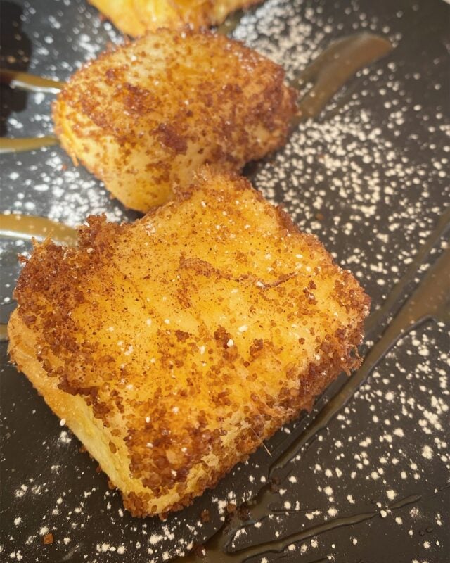 Andrés, afirma con mucho arte que: “Todos los postres son caseros y además están hechos aquí.” El milhojas de nata y crema, montado al momento. Un delicioso arroz con leche o su fantástica leche frita, fluida, untuosa y anisada. Emocionante como un niño en casa de su abuela.