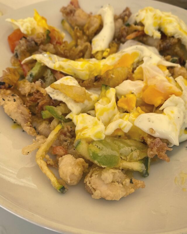 No dejes de compartir su maravillosa tortilla de merluza de pincho, con un punto suave y cuidado. Las alcachofas con salsa de Pedro Ximénez o sus icónicos Fideos al Caballo, con almejas y gambitas, son hoy parte del recetario fuengiroleño.