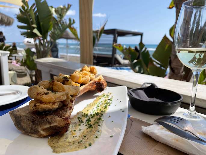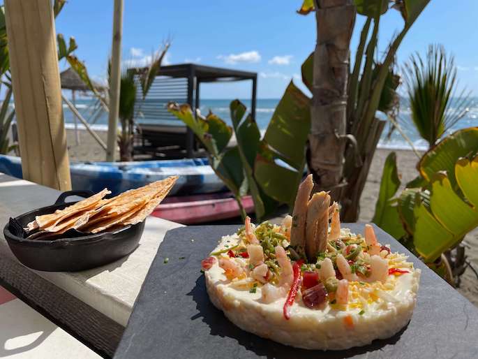 Con una terraza situada en la amplia y bonita playa del Rincón de la Victoria, en la zona de Torre de Benagalbón , este versátil chiringuito ofrece una mezcla de tradición y modernidad , elaboraciones sencillas y cuidadas presentaciones que lo hace distinto ... al chiringuito que solemos tener en mente. La entrada a su sencillo emplazamiento, en el que un equipo muy joven, pero atento, te presenta orgulloso las ‘Sugerencias del día’, ya te hace pensar que algo diferente se cuece por aquí…