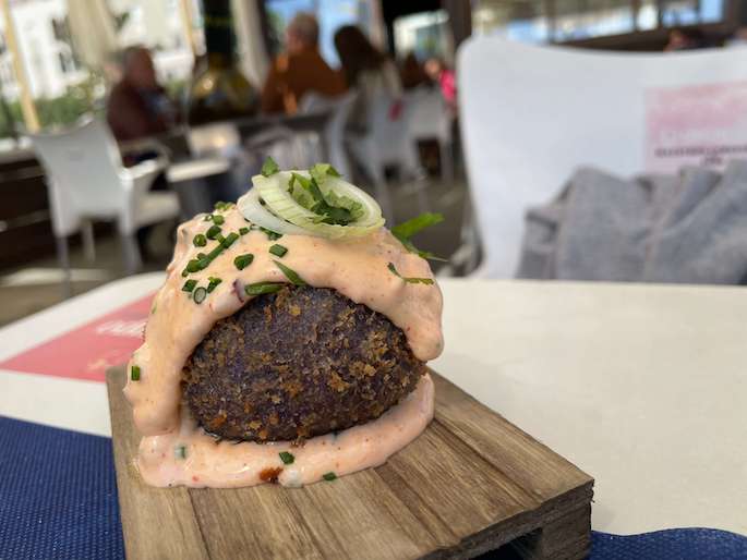 Álvaro Saura, a cargo de los fogones , ofrece alternativas variadas que recibe con gusto el público que se apunta durante los meses de otoño e invierno a sus “Miércoles de Arroz” o al “Club de la Cuchara”, un exitoso ‘Menú Degustación’ de cinco platos que cada viernes cuelga el cartel de “vendido”. Las sugerencias del día, crecen durante el fin de semana y contentan al comensal curioso que quiere probar algo más y al que le resulta difícil decir que no a una inesperada y notable brava rellena de kefta de gambas y mahonesa de siracha o un tartar de lubina con emulsión de aguacate y mango y helado de jengibre y lima . Platos con toques asiáticos muy bien resueltos para una cocina que usa como base el producto malagueño y que juega con los contrastes de temperatura y texturas , como demuestra ese singular helado de jengibre y lima sobre el tartar .