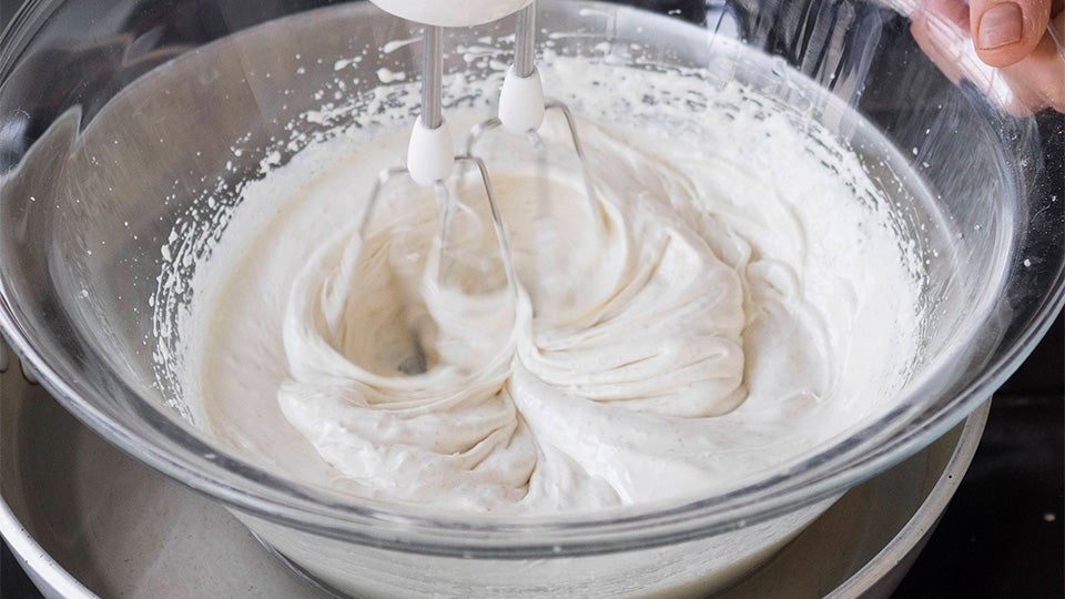 Para obtener nuestra masa de crepes rellenos caseros, lo primero que debemos hacer es batir los dos huevos enérgicamente.
