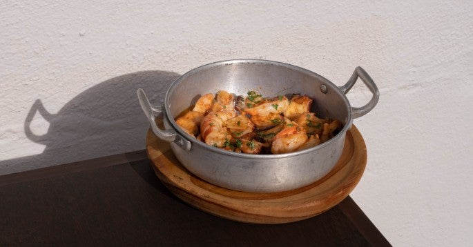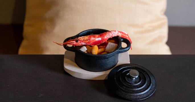 Para empezar tienen propuestas como ensaladilla con gambas de cristal fritas, montaditos de pringá del puchero con tazas de su crema o mini magnun de foie con membrillo y pistachos.Hay taco mexicano de cochinita marinada con mayonesa de albahaca y sartén de pulpo y gambones al ajillo con un toque asiático.