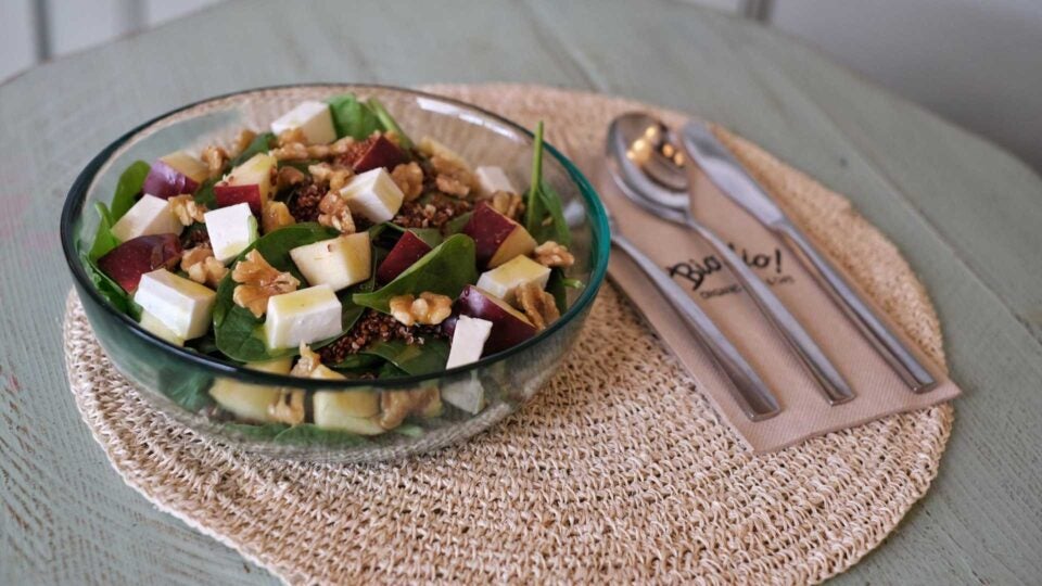 Destacan sus ensaladas, entre las que sobresalen la de quinoa con espinacas, nueces, manzana roja y queso de cabra o la de brotes tiernos con salmón ahumado, aguacate, cebolla morada, frambuesas y pipas de girasol.