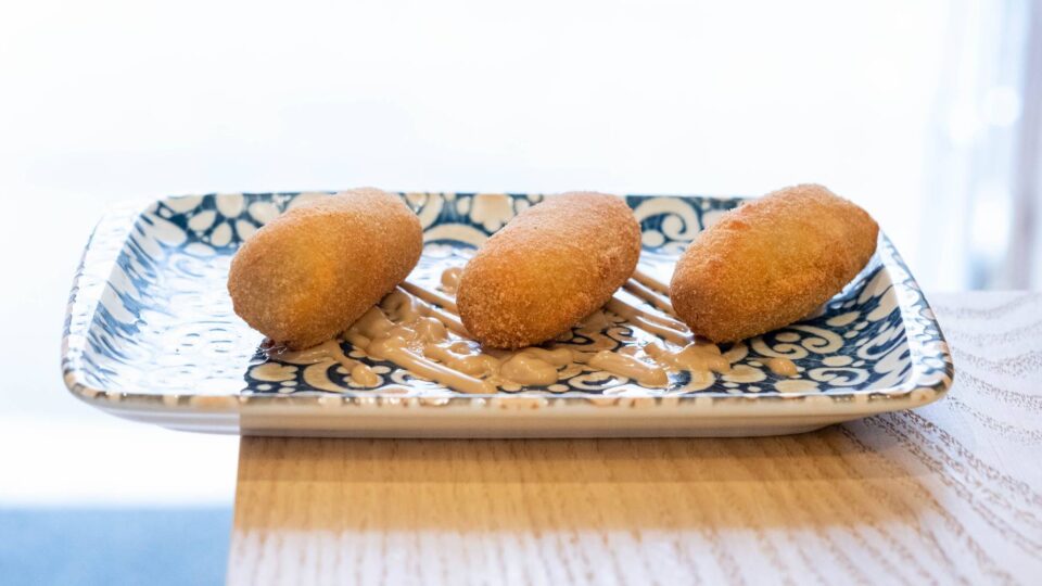 En el apartado de fríos destacan su ensaladilla escabechá, lomo de sardina en vinagre, una merluza confitada al romero y un foie mi-cuit casero con pan de especias. Hay molletes, como uno de cinta de lomo con panceta 5J y otro negro de calamares del mar y campo con alioli casero. Crujientes de pollo y croquetas de puchero completan la carta, que culmina con recetas más elaboradas como canelón de calamar en su tinta, pata de pulpo braseado o carrillada ibérica.