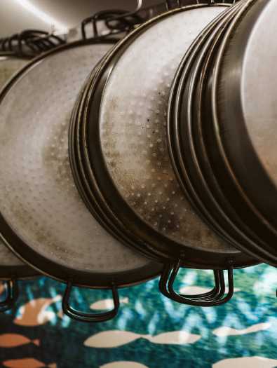 Sin duda son la gran apuesta de este espacio, con una gran variedad de arroces hechos al momento y que acaparan todo tipo de gustos. Hay arroz caldoso de marisco, de carabineros o con bogavante, y paella de ocho clases distintas: desde la del senyoret a la de verduras de temporada con pollo, boletus con pato y foie, o paella negra de calamares, cazón y cola de gambón son algunas de las opciones.