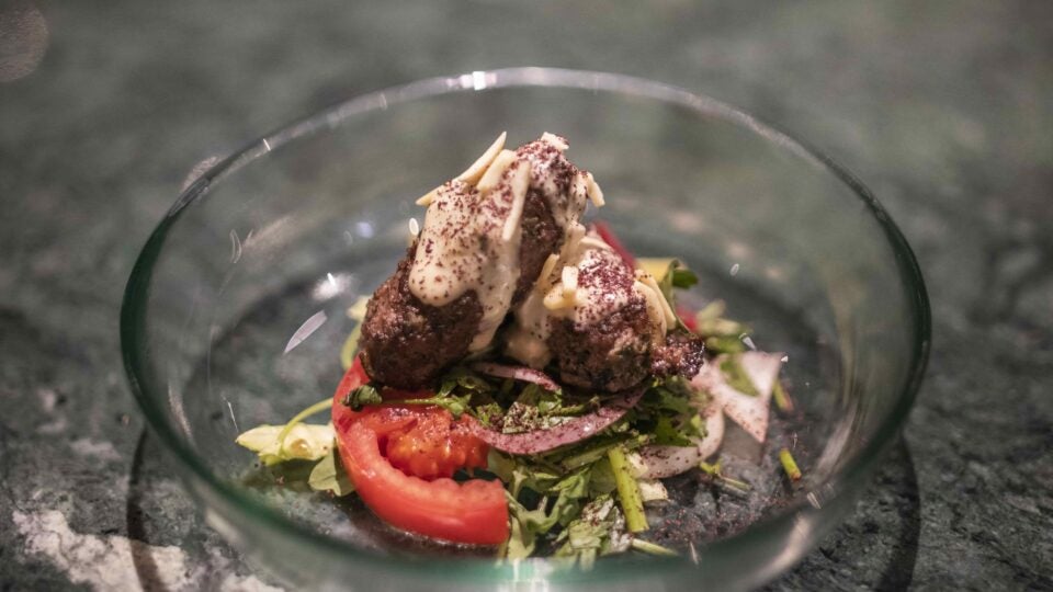 Tienen mezzes, aperitivos tradicionales libaneses como brocheta kafta , batata hara (unas patatas picantes con ajo, cebolla y cilantro) o maghmour , un guiso tradicional libanés de berenjena, salsa de tomate, cebolla, melaza de granada y especias.