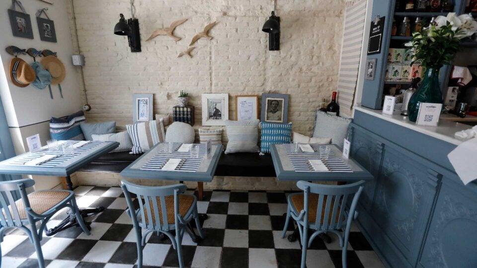 El espacio tiene terraza en la zona peatonal de Mateos Gago y un interior de aire marinero, donde predominan las rayas en tonos blancos y azules y detalles de la decoración que evocan continuamente al mar.