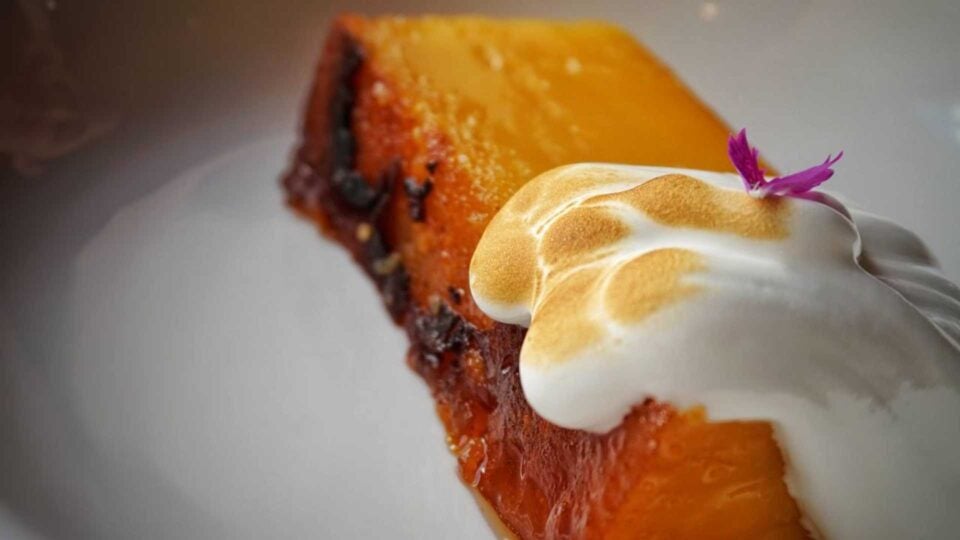 Sus recetas dulces son tocino de cielo, tiramisú y piña asada con reducción de oloroso y helado.