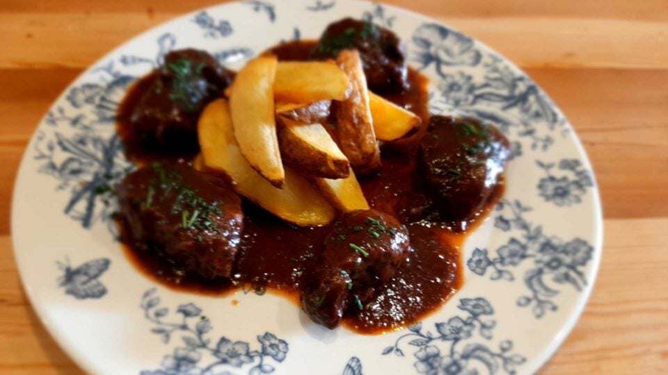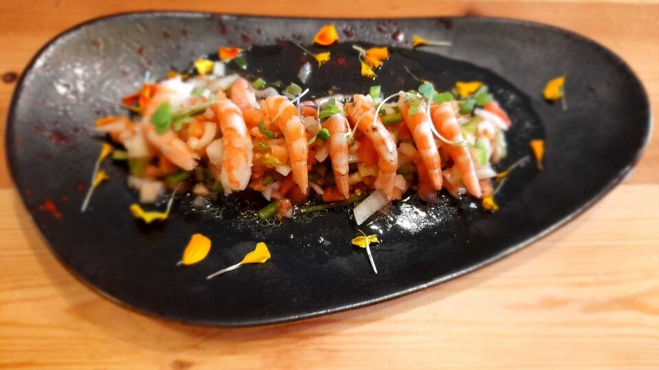 En la carta hay continuos homenajes a la gastronomía sevillana, con recetas como papas aliñás, ensaladilla de langostinos, croquetas, montaditos o carrillada ibérica.