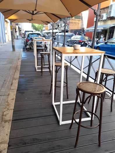 Tiene una terraza añadida en la calzada de la calle Salado con varias mesas altas, además de un interior dividido en dos plantas: la primera para zona de barra y en la superior un salón para reuniones o encuentros más formales. En cuanto a la decoración, cabezas de toros cedidas por toreros sevillanos y cuadros de Balcris son la nota predominante.