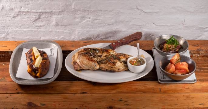 ¿Qué más tienen? En el apartado de brasas se puede pedir desde medio pollo a entraña de añojo o solomillo de vaca. También facera de atún rojo de almadraba, corvina o lubina de estero.