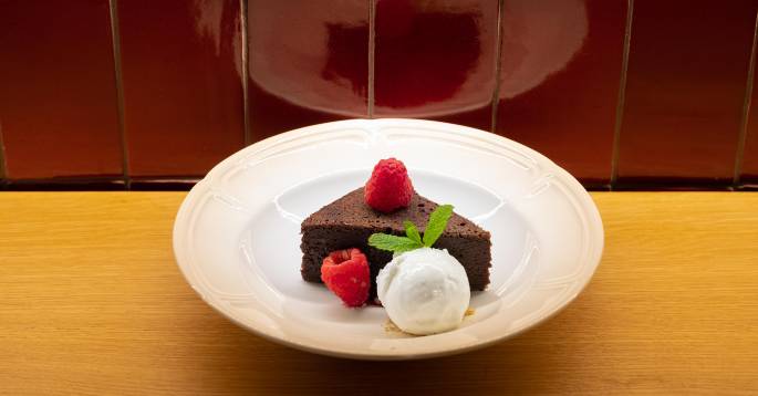 De momento ofrecen dos opciones: brownie tibio con helado de nata y flan de nata y dulce de leche.