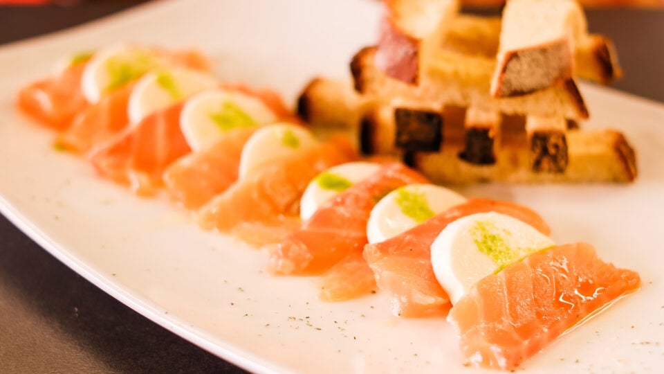 En este establecimiento situado en calle Virgen de las Huertas, el invierno es tiempo de fabadas, arroz con tagarninas o cordero lechal pero en verano apuestan por opciones más frescas como su ensalada de salmón marinado con mozzarela y pan de masa bambini con aromas a azahar. El salmón lo compran fresco y lo marinan ellos mismos.