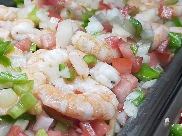 El aliño de gambas, uno de los que más se piden, se cocina con comino, perejil, orégano y buena gamba.