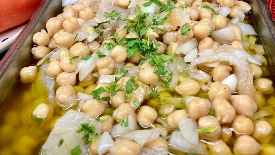 Garbanzos aliñados con bacalao ahumado de Bar Taquilla