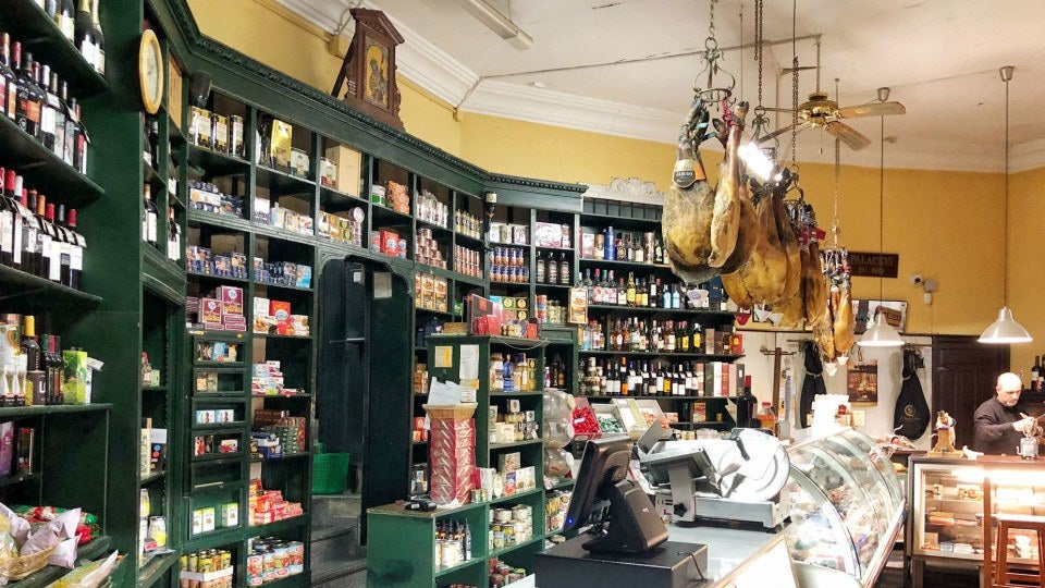 Este ultramarinos empezó su andadura en 1926 y los que lo suelen frecuentan conocen de sobra sus encantos. La parte de la tienda se conserva como en su origen y allí se puede dar buena cuenta de los productos que sirven en papel de estraza: ya sean chacinas, jamón o queso. Hay montaditos y panes de la casa, además de conservas, y tienen especial fama su chorizo picante, su lomo al jerez o sus chicharrones. Ahora tienen también una pequeña terraza sobre tarimas en la calzada, además de la zona de barra.