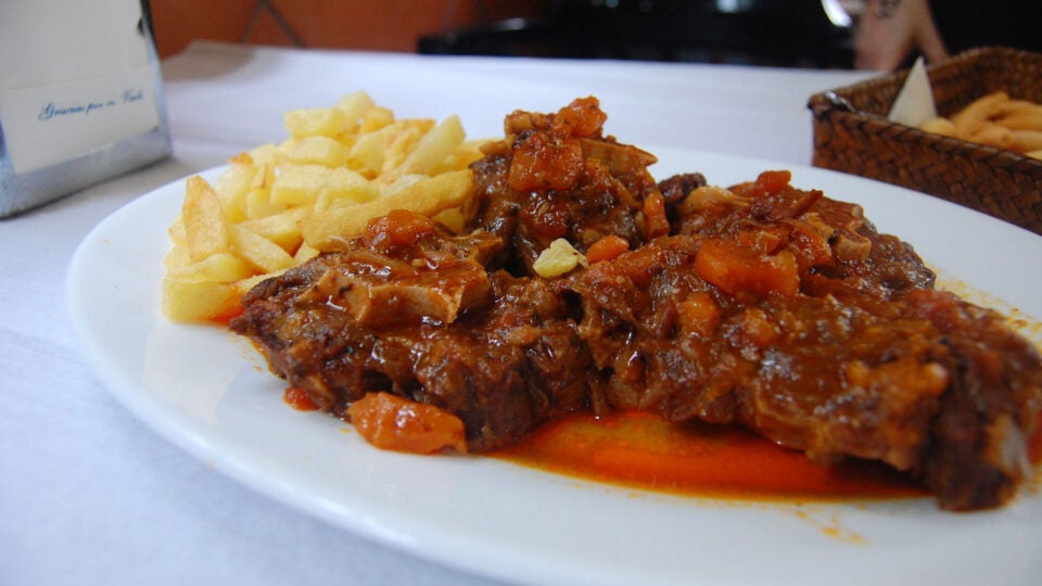 En este restaurante de Ramón y Cajal llevan esta receta por montera, con una receta perfeccionada a lo largo de los años. La cocinan con vino blanco, tinto y brandy a fuego lento durante 90 minutos hasta que quede bien tierna y luego trituran las verduras sin colarlas para que la salsa no pierda carácter.
