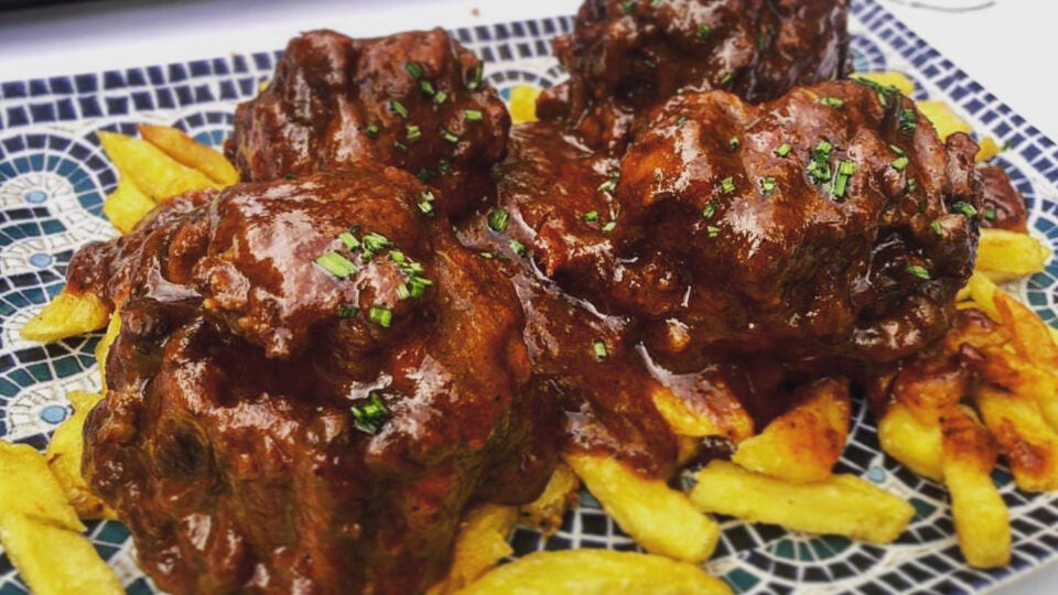 En temporada, se puede degustar su cola de toro tanto estofada en guiso tradicional como propuestas más renovadoras como en pan bao con crujiente de zanahoria de acompañamiento.