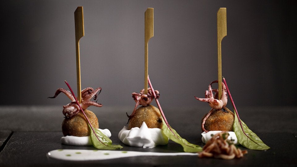 Entre su contundente carta destacan los arroces de perdiz, bogavante o carabineros, además de el bombón de atún sobre berenjena rebozada o las croquetas de rape envueltas en kikos y miel de caña.
