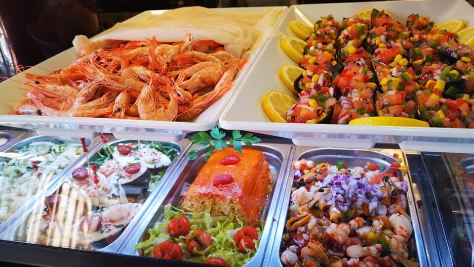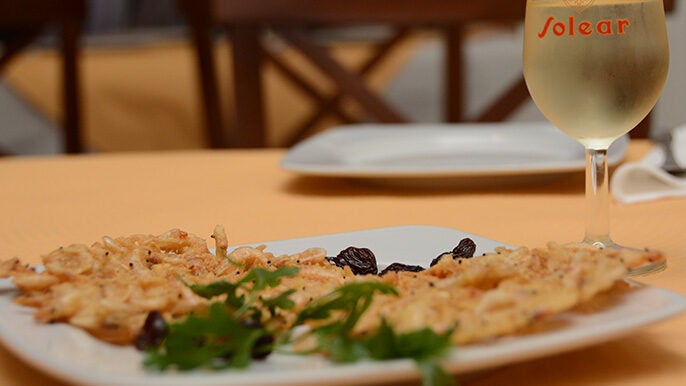 De esa cercanía a la lonja, surgen sus pescado de roca fritos enteros que van variando según la oferta diaria. Y para quienes quieran probar sabores más potentes, su sardina marinada con tosta de pan de tomate y pimientos asados o el tallarín de sepia con alioli de su tinta y una boloñesa de sus tentáculos.