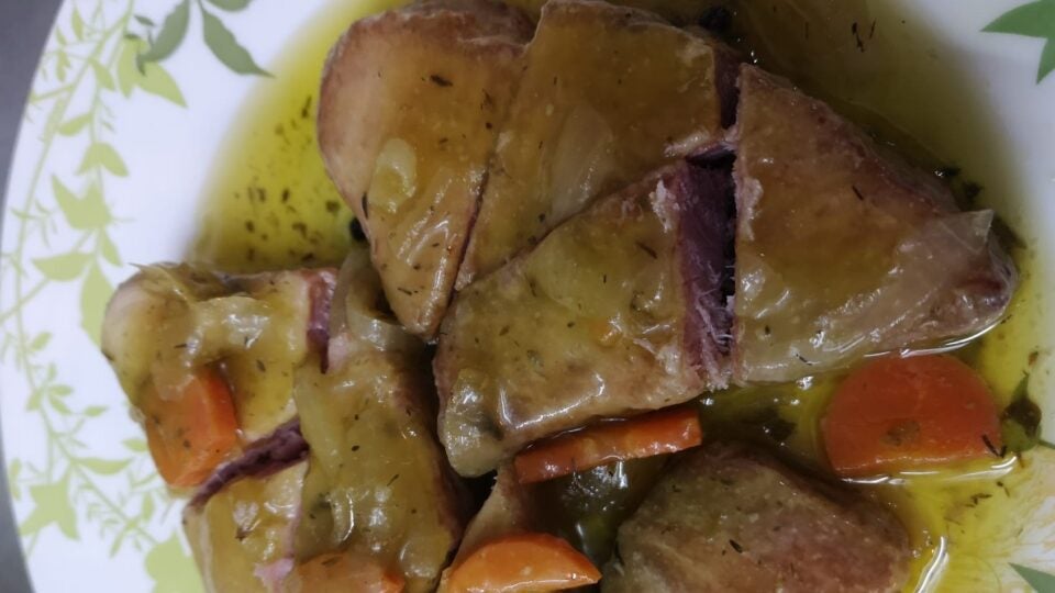 El codillo de cerdo de Sabina lleva en su carta más de 20 años y se ha convertido en uno de sus platos más emblemáticos. La base de la receta es un codillo de cerdo de unos 800 gramos que se elabora sobre un sofrito ligeramente especiado, posteriormente horneado y salseado con vinos generosos durante unas dos horas hasta conseguir que la carne se dore. Se acompaña de un sabroso puré de patatas.