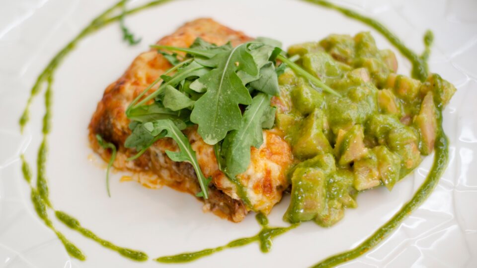 En Papirusa le han dado un vuelco a la típica lasaña y la hacen utilizando un ragú (guiso típico italiano), siguiendo los pasos de esta versión creada por sus chefs Mauricio y Oliver. Emplean un sofrito con varios tipos de pimientos, cebolla, ajo, romero y tomillo. La cola de toro se guisa previamente unas cuatro horas y posteriormente se vuelve a guisar a cocción lenta con el ragú durante otras cuatro horas. El resultado es una carne sumamente tierna. La lasaña también lleva berenjenas asadas y a la parrilla, además de pasta al huevo artesanal y una bechamel tradicional. Se gratina con mozarella y parmesano. Rúcula y pesto de albahaca culminan la receta.