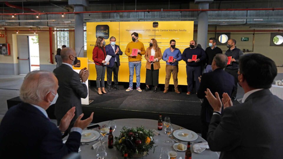 En esta ocasión la Mención especial ha recaído sobre un grupo de cocineros que durante la primera ola de la pandemia colaboró con la iniciativa «World Central Kitchen» , auspiciada por el chef José Andrés con el fin de ofrecer un plato de comida a personas sin recursos . Con Juanlu Fernández, Javier Padura y Leo Núñez a la cabeza, se formó un nutrido grupo de cocineros que de forma voluntaria realizaron hasta 2.000 raciones diarias durante dos meses. Entre los responsables del equipo, Camila Ferraro, Antonio Bort, José María Hernández, Javier Almansa o Genoveva Torres, además de Sergio Mulet y Juan Labrador. Agustín Vidal, presidente del Banco de Alimentos de Sevilla, entregó el premio junto a Isabel Aguilar, editora de GURMÉ en Sevilla.
