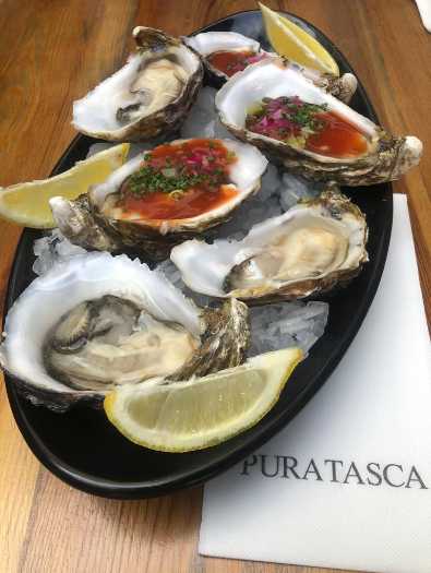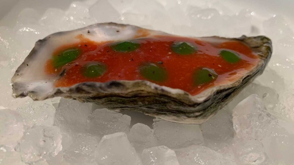 Suelen tener ostras francesas de la cuenca de Marenne d’Oleron. Emplean un calibre nº 2 y las preparan tanto al natural como encevichadas. Últimamente han optado por una nueva versión que juega con Bloody Mary.