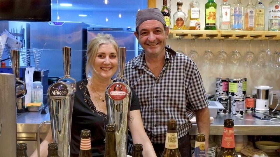 Inma y Manuel reconocen que el sevillano sabe poco de gastronomía holandesa y que por eso explican constantemente en qué consiste cada plato, para lo que cuentan sobre la barra con una pantalla donde se proyectan continuamente imágenes de las viandas que tienen en carta.
