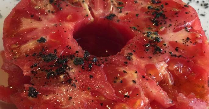 Este nuevo espacio es una prolongación de Mariatrifulca y una de las propuestas de su carta es su “Tomate de verdad”, elaborado con una variedad ecológica de Aracena muy carnosa, de un rojo intenso y madurado. Son tomates grandes, de unos 600 u 800 gramos la pieza. Se emplea el corazón pelado y se aliña con aceite de oliva virgen extra, vinagre de Pedro Ximénez y sal de carbón. Se sirve por piezas enteras para que el propio comensal lo trocee.