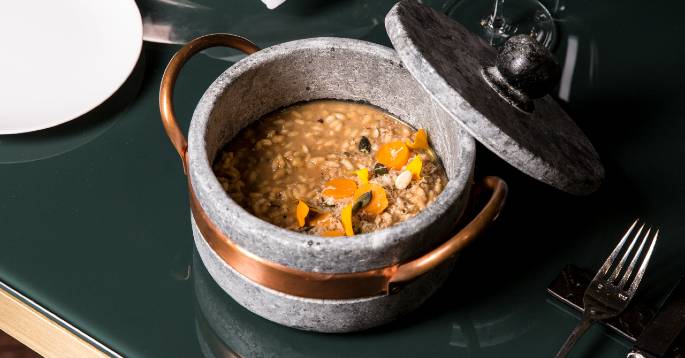 Además, el restaurante llega con recetas veganas y vegetarianas . Entre estas últimas se encuentran arroz de calabaza con parmesano y nueces o vichysoisse de espárrago blanco con piñones y trufa. Entre las veganas, verduras de temporada a la brasa o setas de Aracena.