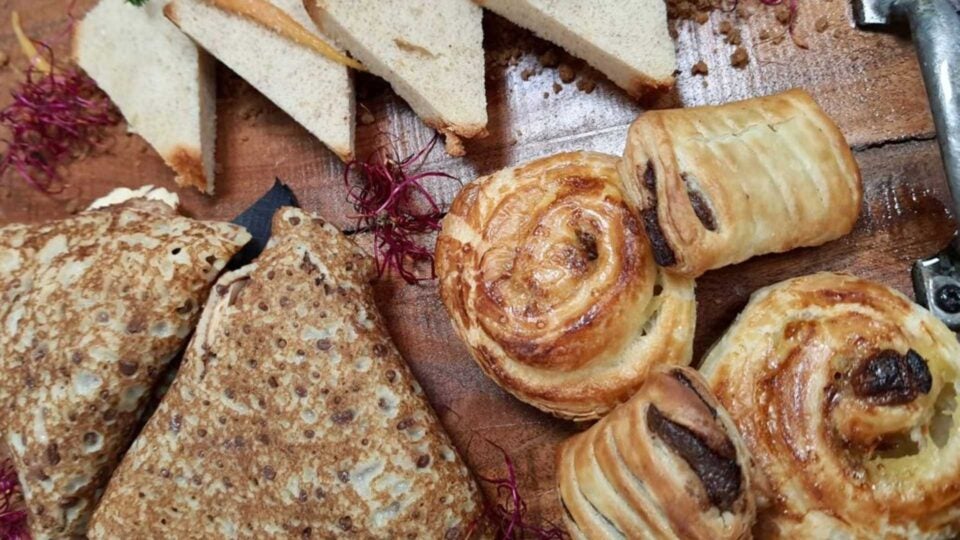 También incluye una tabla para compartir en la que se ofrecen aperitivos salados , como quesos y embutidos ibéricos, sherrys aliñados, aceitunas y hummus. Continúa con otras recetas a elegir, como huevos benedictine sobre pan de centeno y lino; mantequilla de aguacate, tartar de atún y brotes de rábanos sobre pan de pasas, avena y miel o chicharrones de Cádiz, piriñaca y aceite de oliva sobre pan de cristal.