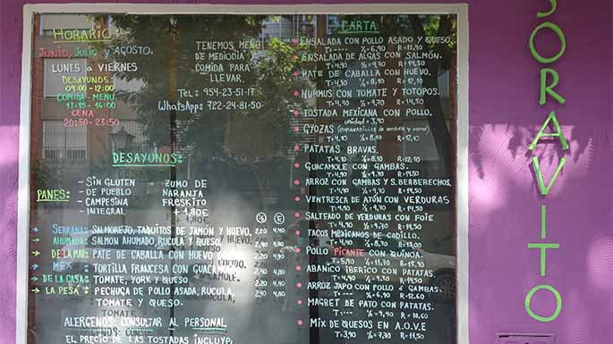 La otra novedad de Soravito desde su reapertura en junio es el servicio de «take away». Se pueden realizar pedidos en el 954 23 51 17 y a tarvés de Whatsapp en el 722 24 81 50 . Dos vías a través de las que disfrutar en casa de especialidades de Soravito como la ensalada de algas y salmón, las patatas bravas con salsa casera, el guacamole con gambas, el salteado de verduras con foie o el pollo picante con quinoa .
