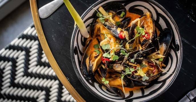 Estrenan también una nueva carta con todos los platos de elaboración propia y con productos de mercado. Aterrizan nuevas propuestas como ... la ensaladilla de gambas o los mejillones tigre , mientras que permanecen clásicos como el salmorejo de mango con gambones confitados y cebolleta o gyozas de verduras o el patacón colombiano.