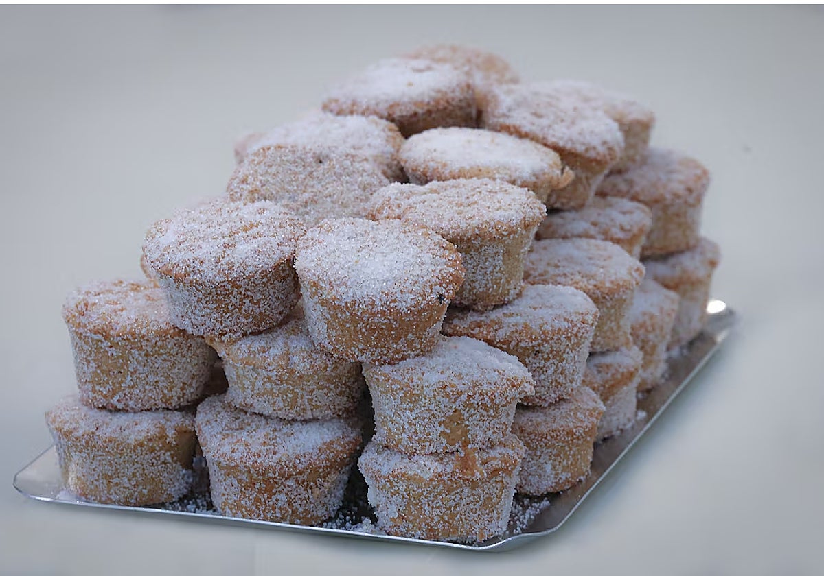 El mostrador de Tradición Repostera Molinos es también un calendario comestible. En Navidad, la vitrina se llena de polvorones y mantecados de almendra, coco o chocolate. Entre Carnaval y Semana Santa, aparecen pestiños, borrachuelos, torrijas o los hornazos de Pascua. Durante el año, los bizcochos, las tortas finas, las sultanas de coco y las cristinas marcan la rutina diaria de quienes entran a por «lo de siempre».
